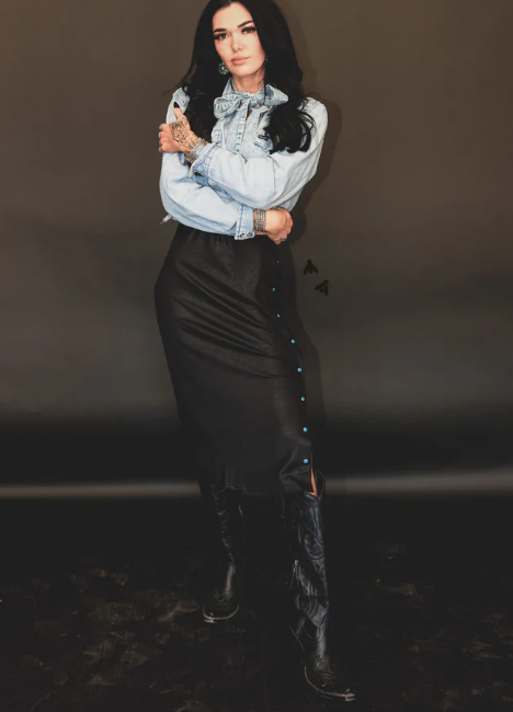 adjustable pearl snap skirt.... say less.& it's even in our SUPER POPULAR leather lux material.it's...
