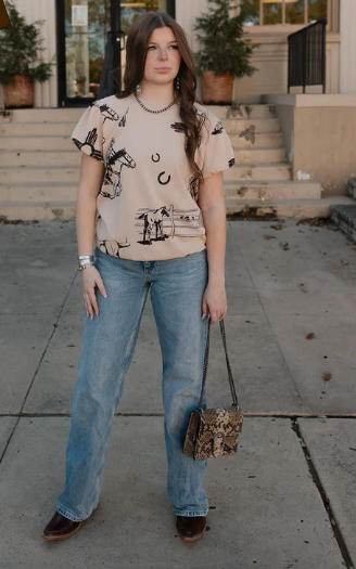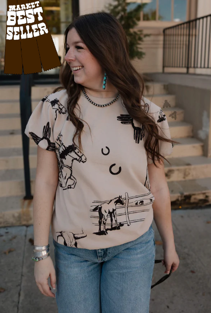 100% cotton and giving all the western vibes. This top has some girliness with western...